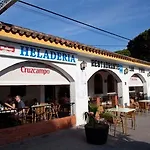 Los huéspedes pueden comer en el restaurante Restaurante Asador El Nene justo al lado del Hostal Los Pinos.